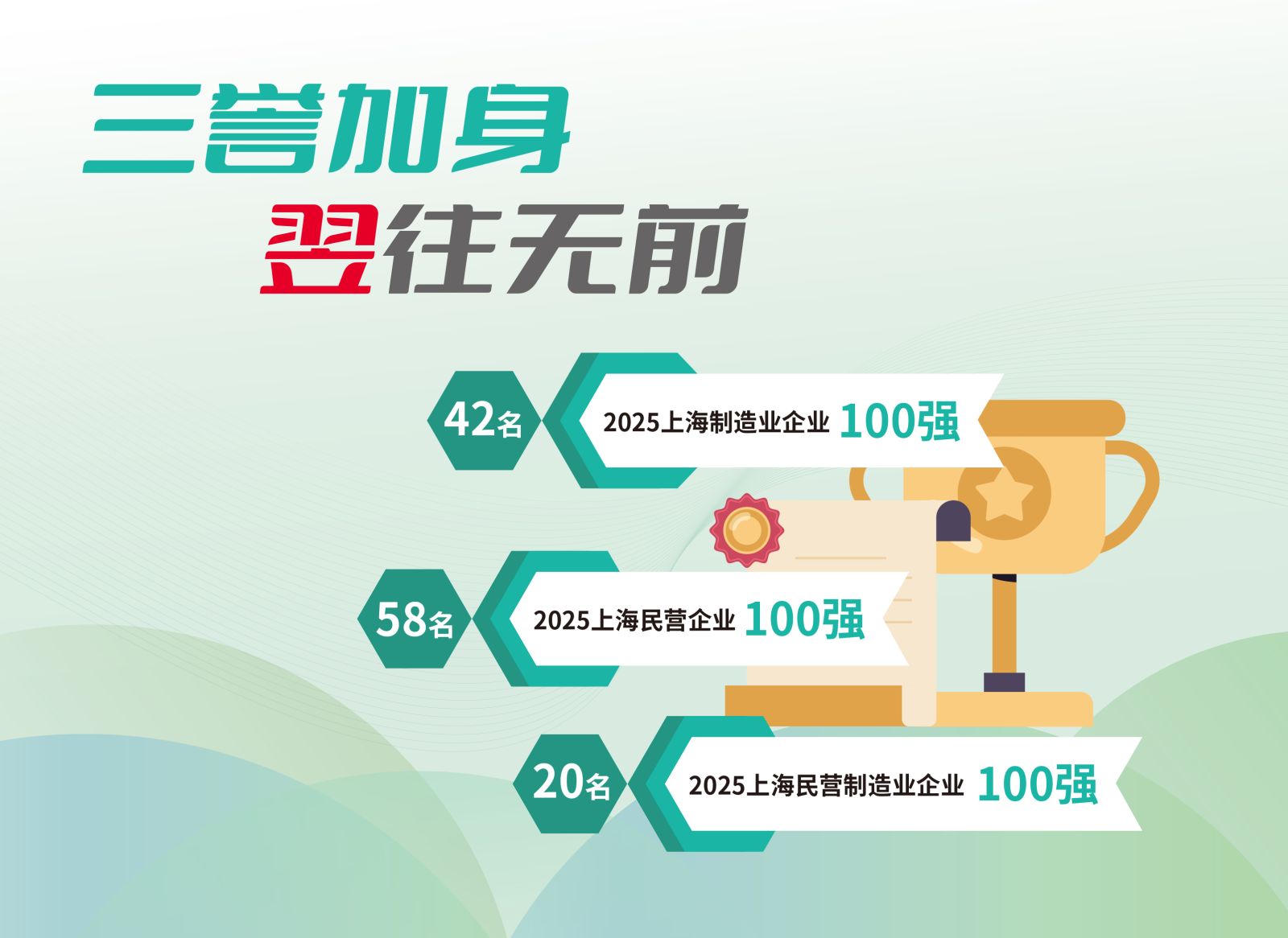 On September 23, 2025, the Shanghai Top 100 Enterprises rankings were officially announced. Thanks to its robust innovation capabilities and outstanding market performance in the field of intelligent manufacturing, Easun Technology successfully secured spots on three authoritative lists. The company was ranked 42nd on the "2025 Shanghai Top 100 Manufacturing Enterprises" list, 58th on the "2025 Shanghai Top 100 Private Enterprises" list, and notably achieved 20th place on the "2025 Shanghai Top 100 Private Manufacturing Enterprises" list.